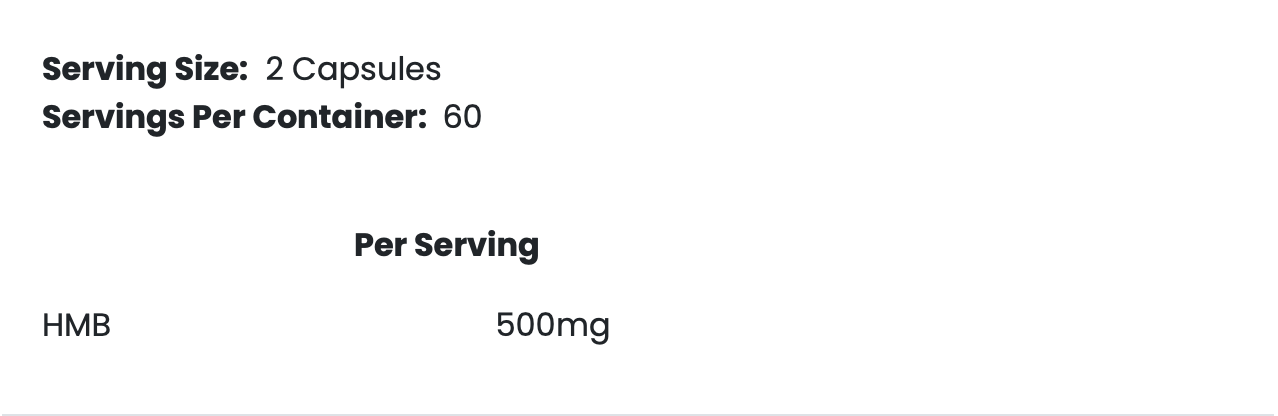 - HMB: 500 mg