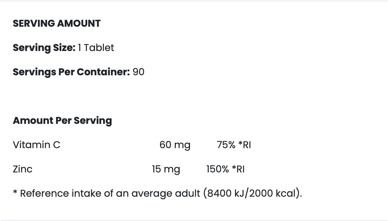 Zink (Zinkgluconaat): Essentieel mineraal dat het immuunsysteem versterkt, de celgroei bevordert en helpt bij de wondgenezing.