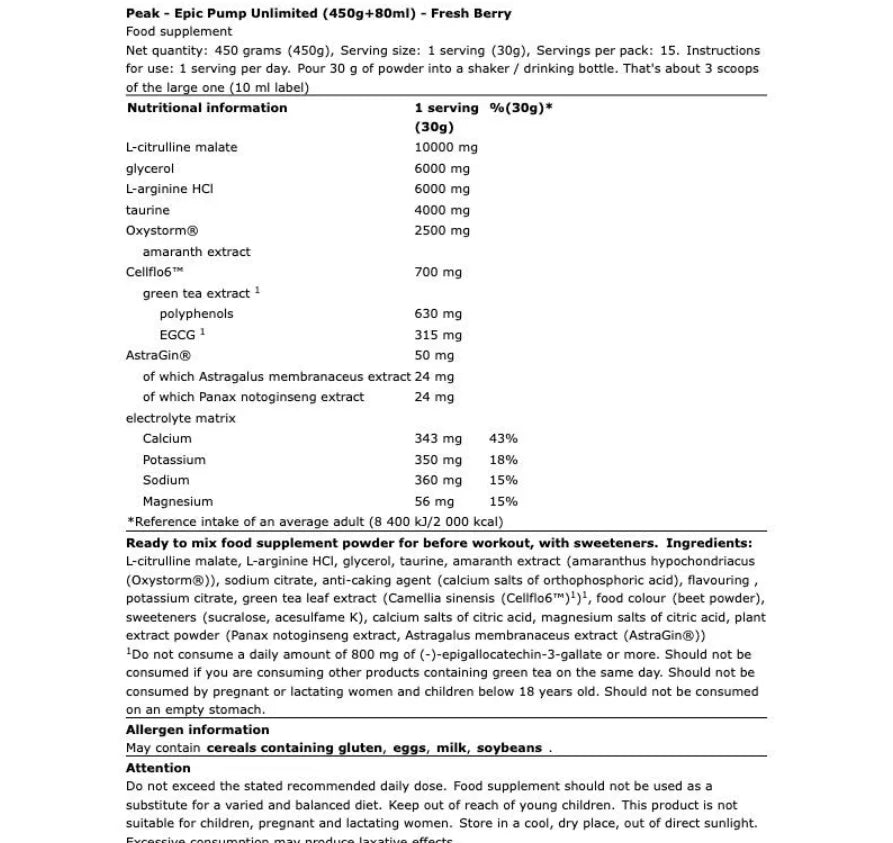 Maak je klaar voor de ultieme pomp met Peak Epic Pump Unlimited – Fresh Berry smaak die je training letterlijk op smaak brengt.