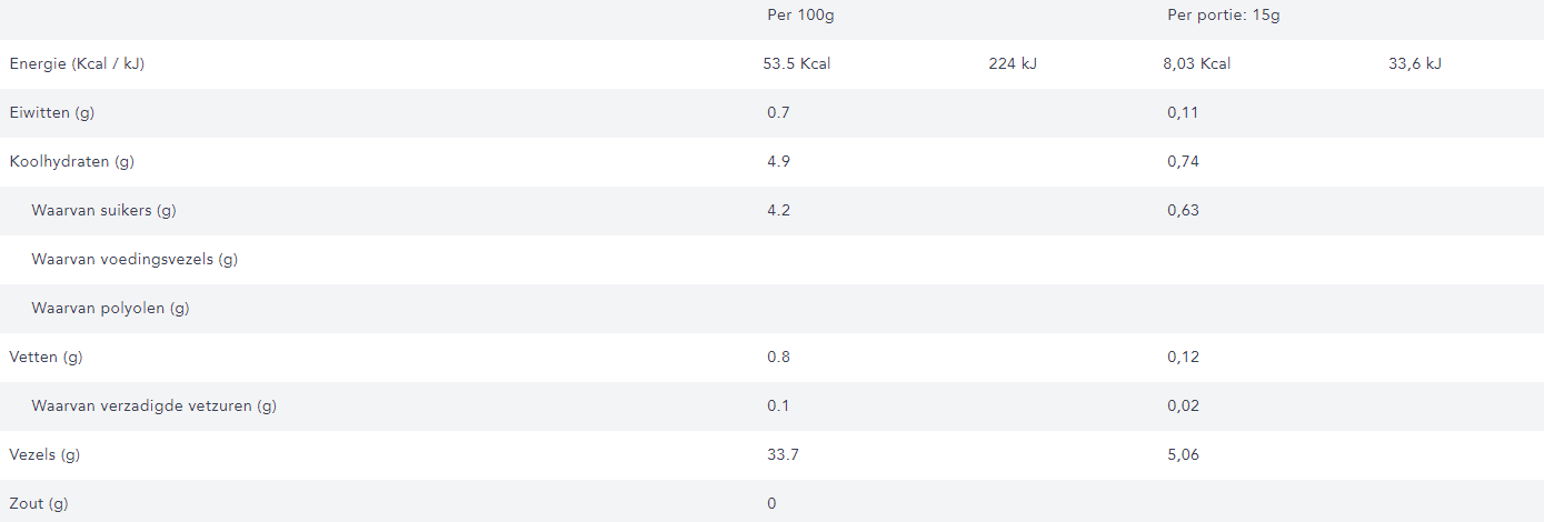 - Bevat geen toegevoegde suikers of kunstmatige ingrediënten