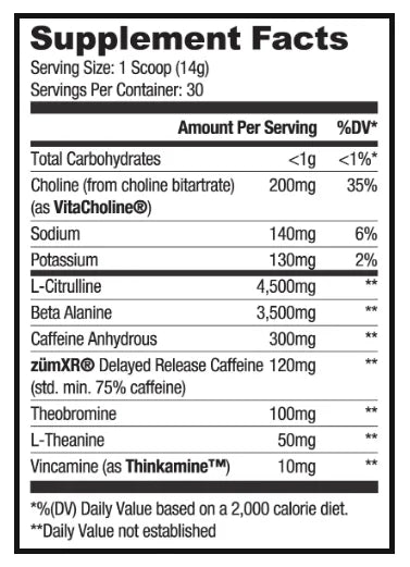 • 120 mg ZumXR™ Extended Release Caffeïne: Biedt langdurige energie zonder de gevreesde crash.